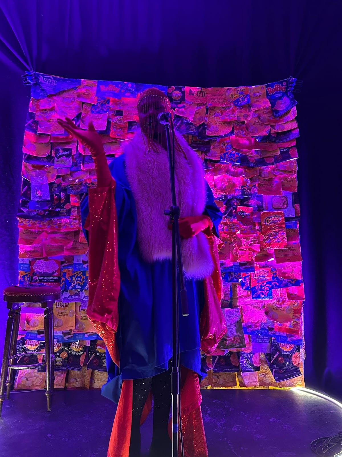 So many layers to Micha's performance, the chip bag quilt, the costume design, and more.